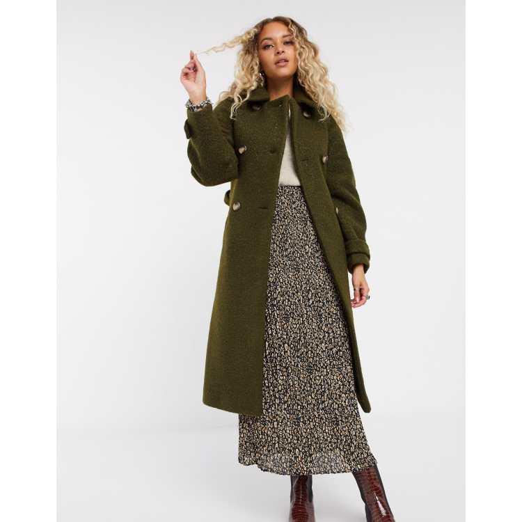 Topshop boucle trench coat in khaki ASOS
