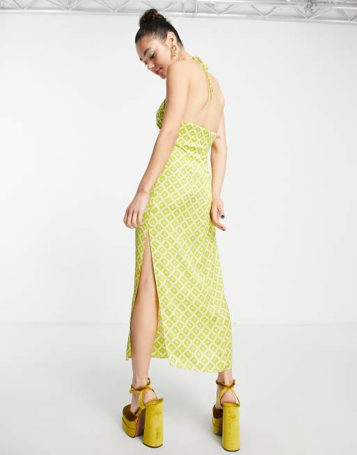 Topshop geo border dress 2025, Topshop geo floral cut out halter dress in light green 2025