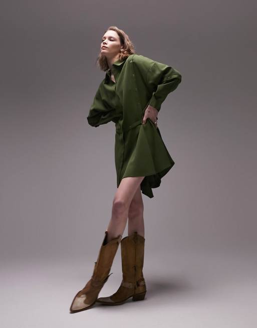 TOPSHOP KHAKI FAUX LEATHER PU 3 4 SLEEVE SHIRT DRESS ALL SIZE eBay