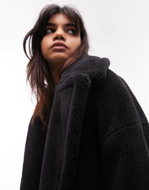 Topshop Jackets Coats Topshop Black Borg Zip Up Teddy Jacket