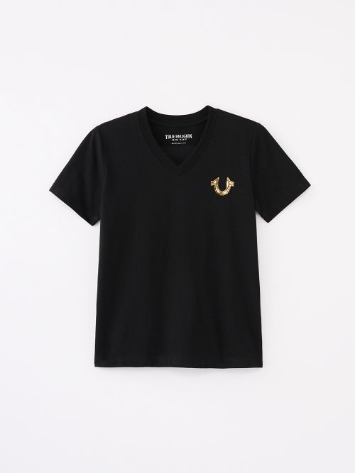 CRYSTAL HORSESHOE LOGO V NECK TEE