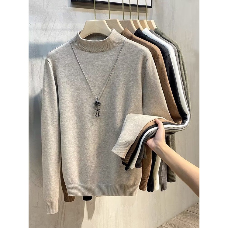 Half Turtleneck Sweater Men Korean Version Trendy Outer Wear Solid