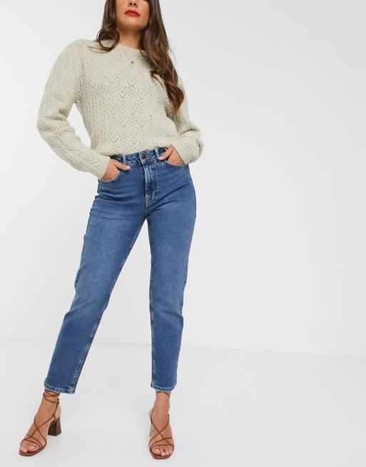 Vero Moda cotton straight leg jeans in mid blue MBLUE