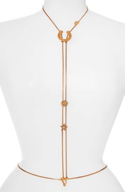 Versace Gold Tone Western Rodeo Charms Body Chain Necklace at