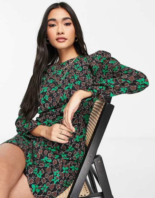 Mango Vestito corto a maniche lunghe svasato verde con stampa