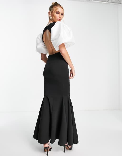 ASOS DESIGN Vestito lungo con maniche a sbuffo e cut out in raso