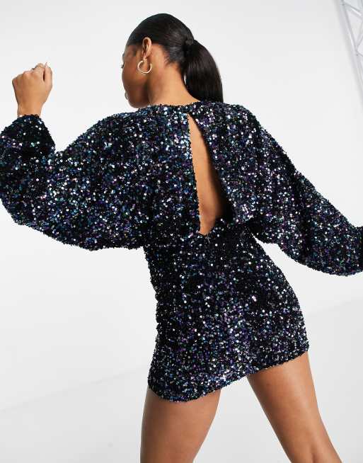 Vestito paillettes pull and bear 2025, Pull Bear Vestito a maniche lunghe con scollo a V profondo e 2025