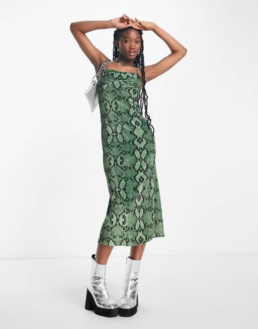 COLLUSION Vestito midi con scollo squadrato verde pitonato ASOS