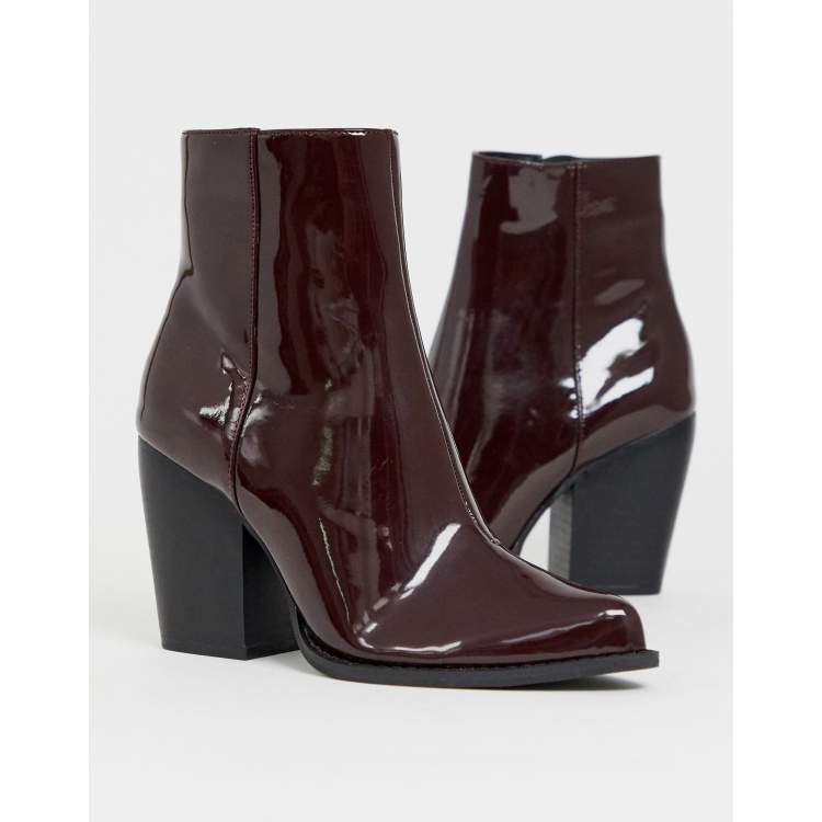ASOS DESIGN Robin heeled ankle boots in burgundy patent ASOS