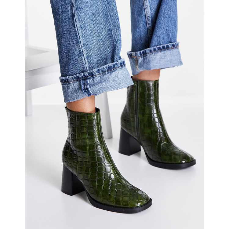 ASOS DESIGN Revival round toe block heeled boots in green ASOS