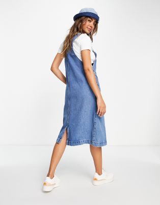ASOS DESIGN denim dungaree dress in midwash blue ASOS