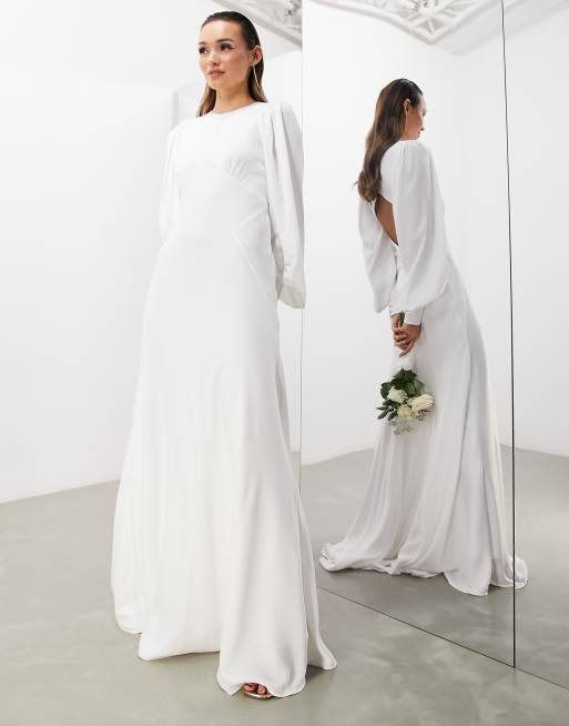 ASOS EDITION Lucinda satin blouson sleeve maxi wedding dress with seam details and cut out back in ivory