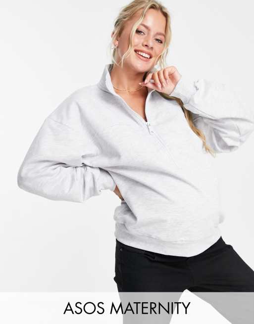 ASOS DESIGN Maternity nursing half zip sweatshirt in gray heather