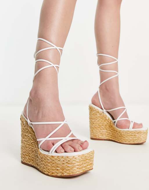 ASOS DESIGN Tanon Zeppe bianche con allacciatura sulla gamba