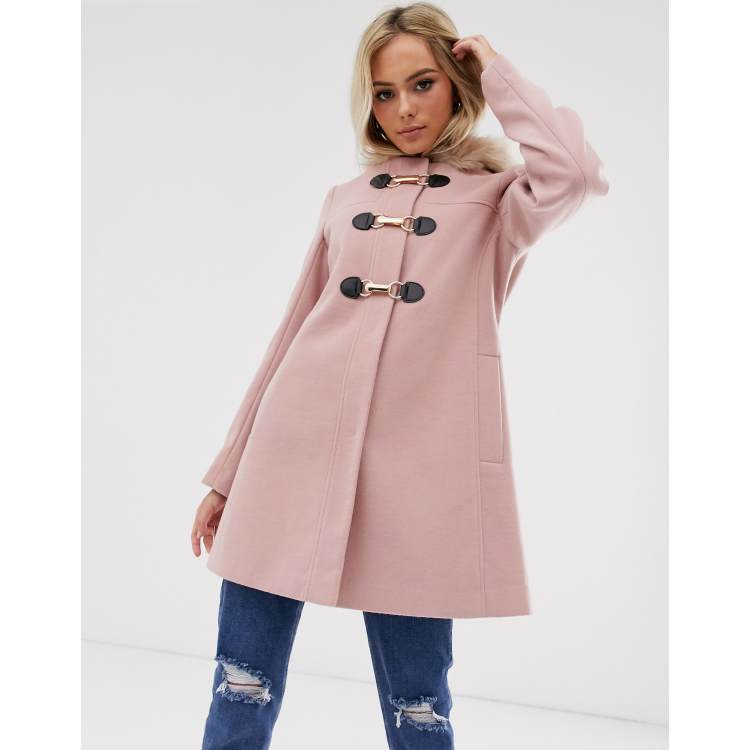 ASOS DESIGN duffle with swing skirt and metal work coat in pink ASOS