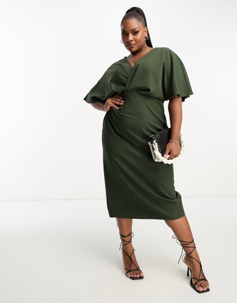 ASOS DESIGN Tall plunge bandeau cocoon midi skater dress in forest green