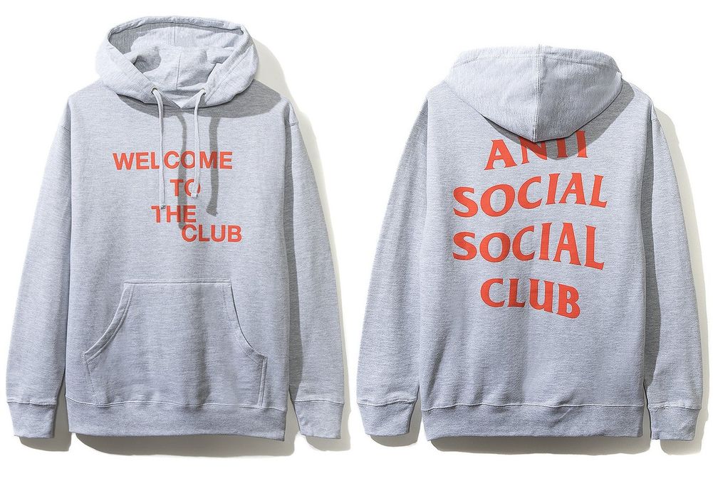 Anti Social Social Club Grey Welcome To The Club Hoodie On The Arm