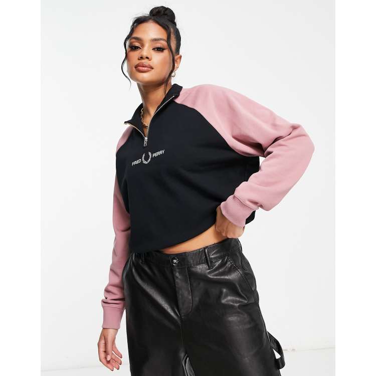 Fred Perry half zip colour block sweatshirt in black and pink ASOS