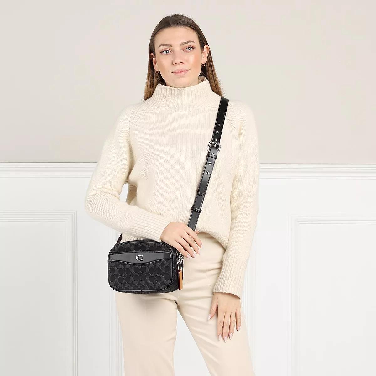 Coach Washed Denim Signature Camera Bag Black Denim Crossbody Bag