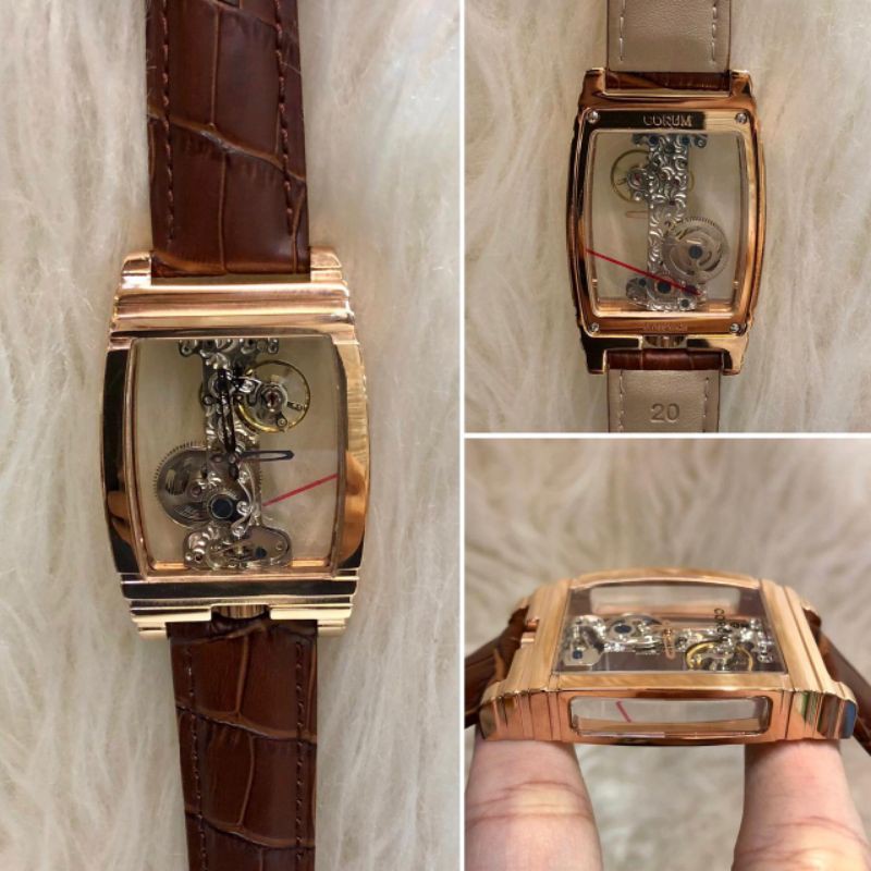 Jual JAM TANGAN CORUM BRIDGE MANUAL WINDING ROSE GOLD BROWN