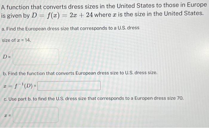 Solved A function that converts dress sizes in the United Chegg