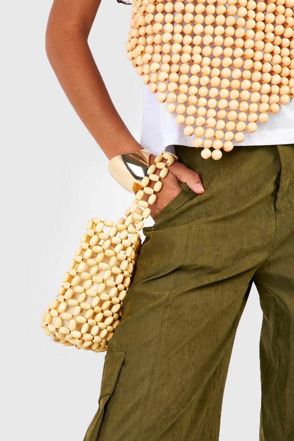 ASOS DESIGN triangular bamboo beaded handled bag with detachable cross body strap