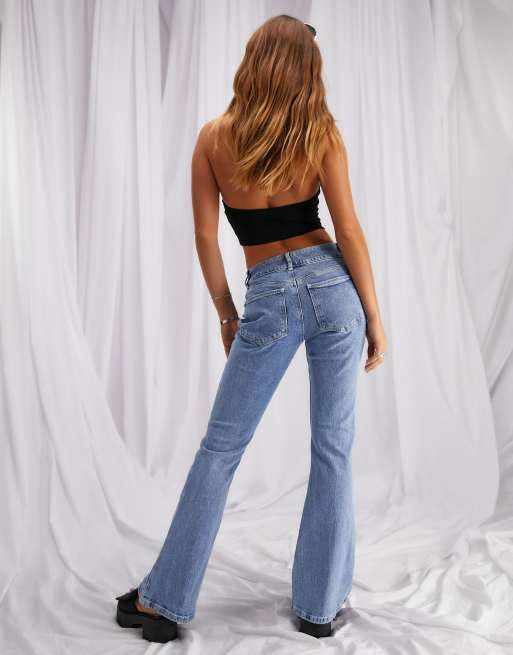 ASOS DESIGN Jeans a zampa a vita bassa con cintura lavaggio blu medio