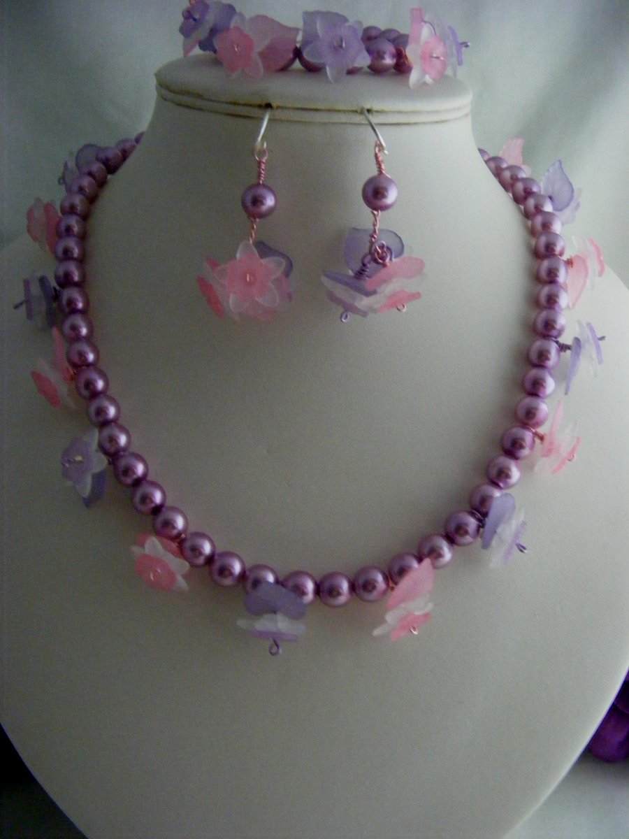 Lilac Pearl and Flower Jewellery Set. Folksy