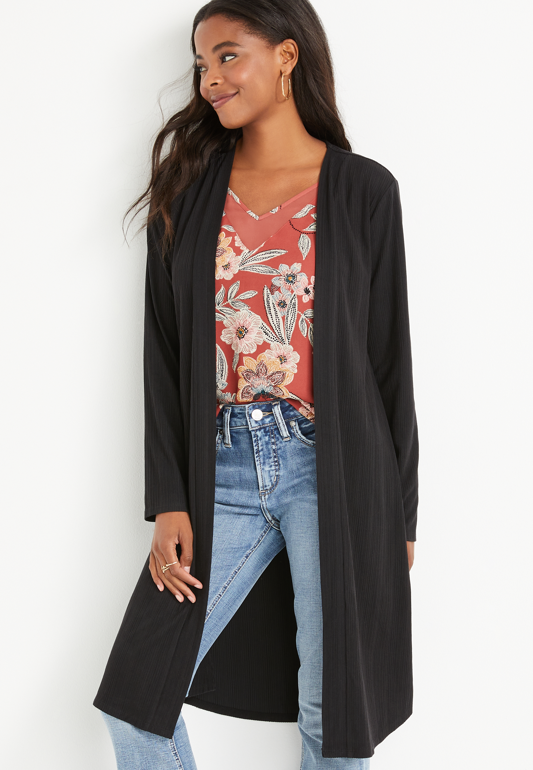 LONG RIBBED DUSTER in Black VENUS Cardigan sweaters for women