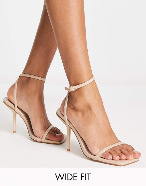 Truffle Collection Wide Fit barely there heeled sandals in beige