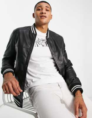 Barney's originals real leather varsity jacket with panelling 2025, Barney s Originals leather biker jacket with mock croc panels 2025