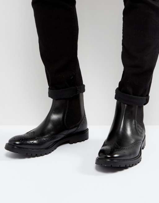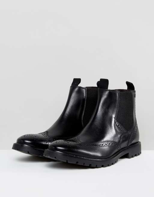Base London Bosworth Leather Brogue Chelsea Boots In Black