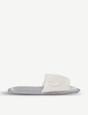 THE WHITE COMPANY Faux fur and satin slipper sliders