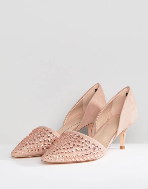 Beaded kitten heels 2025, Leda Beaded Glittered Ankle Strap Pumps Silver 2025