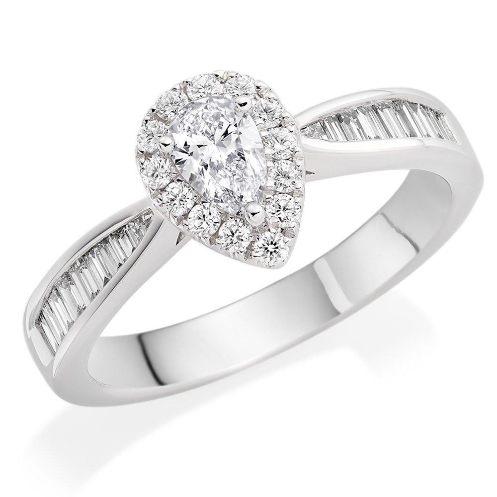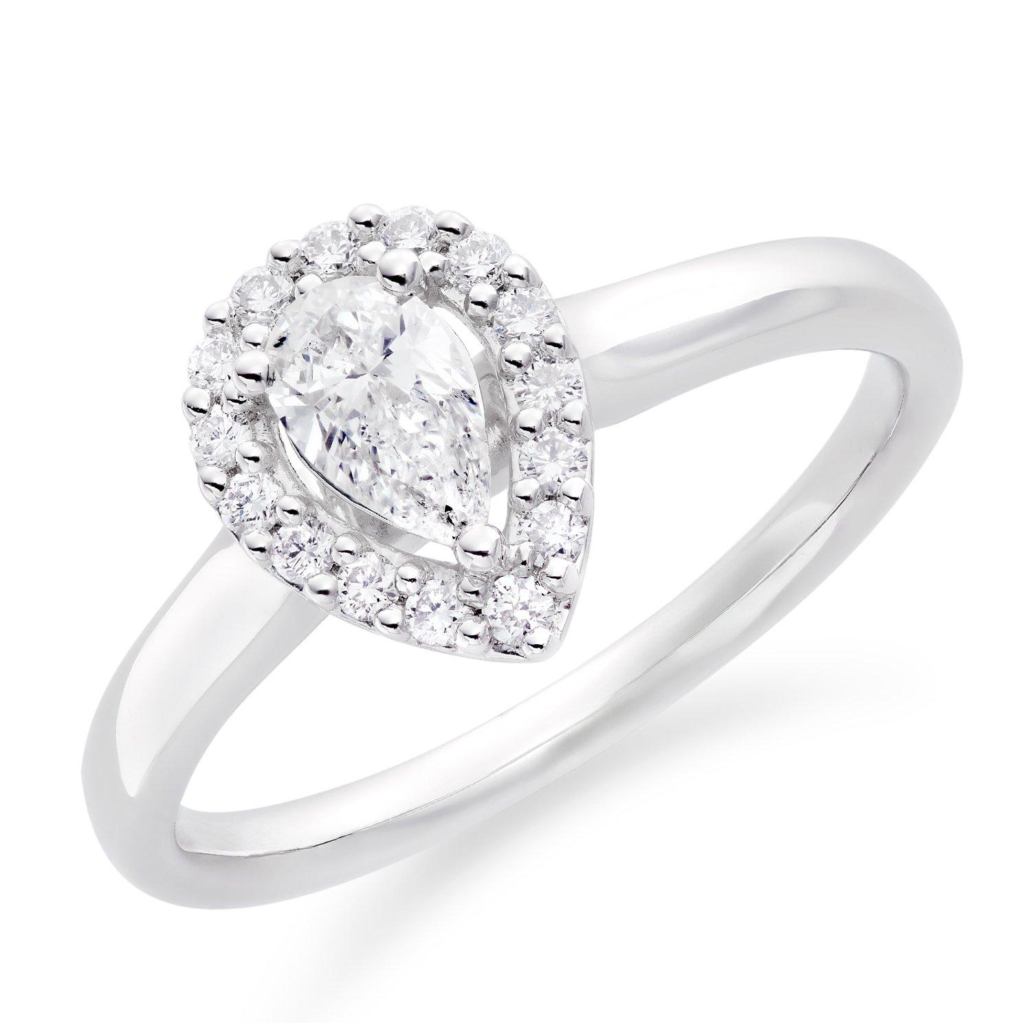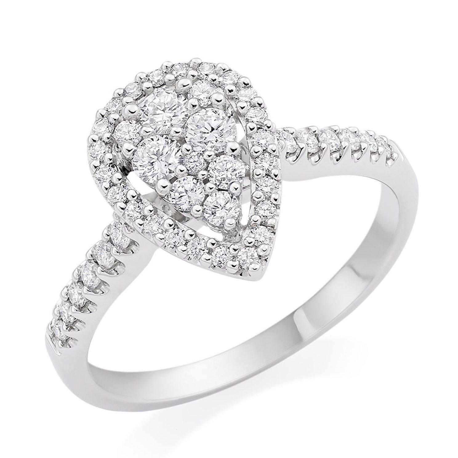Beaverbrooks pear shaped ring 2025, 18ct White Gold Pear Shaped Diamond Halo Ring 2025