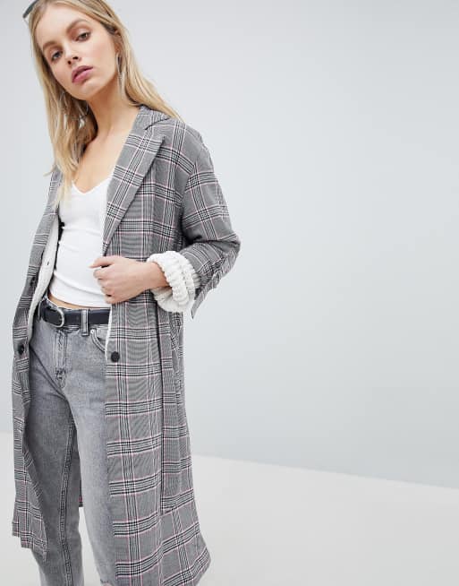 Bershka check teddy long line coat