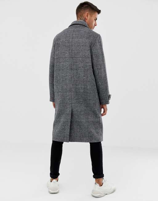 Bershka oversized wool coat in gray check