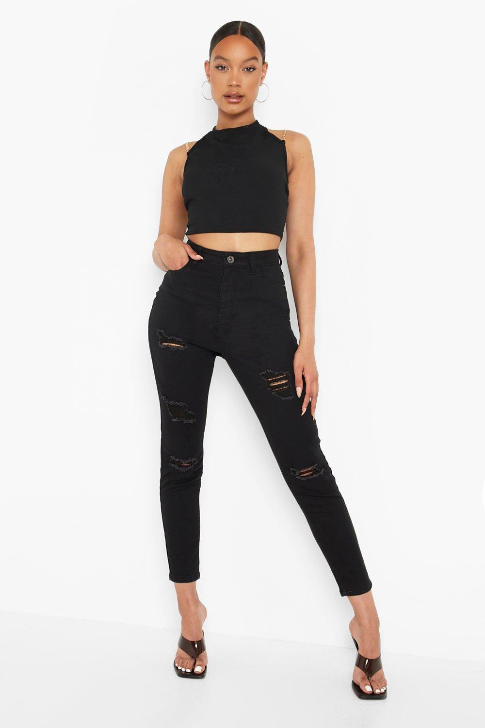 Boohoo black ripped jeans 2025, Basics High Waisted Extreme Ripped Skinny Jeans 2025