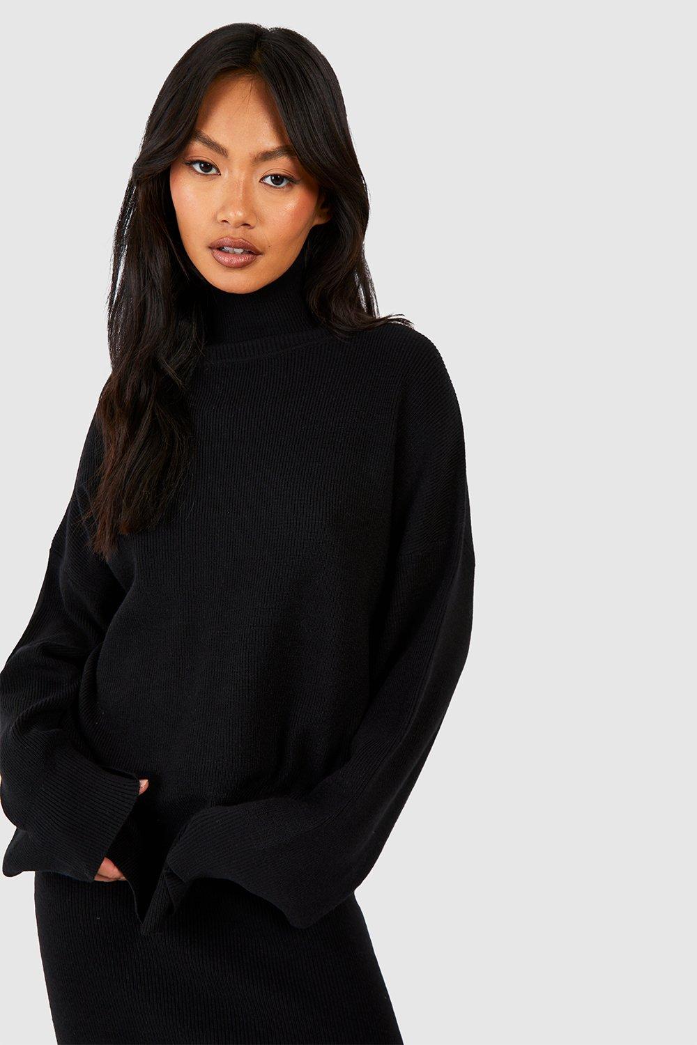 Boohoo black turtleneck 2025, Turtleneck Jersey Knit Long Sleeve Top 2025