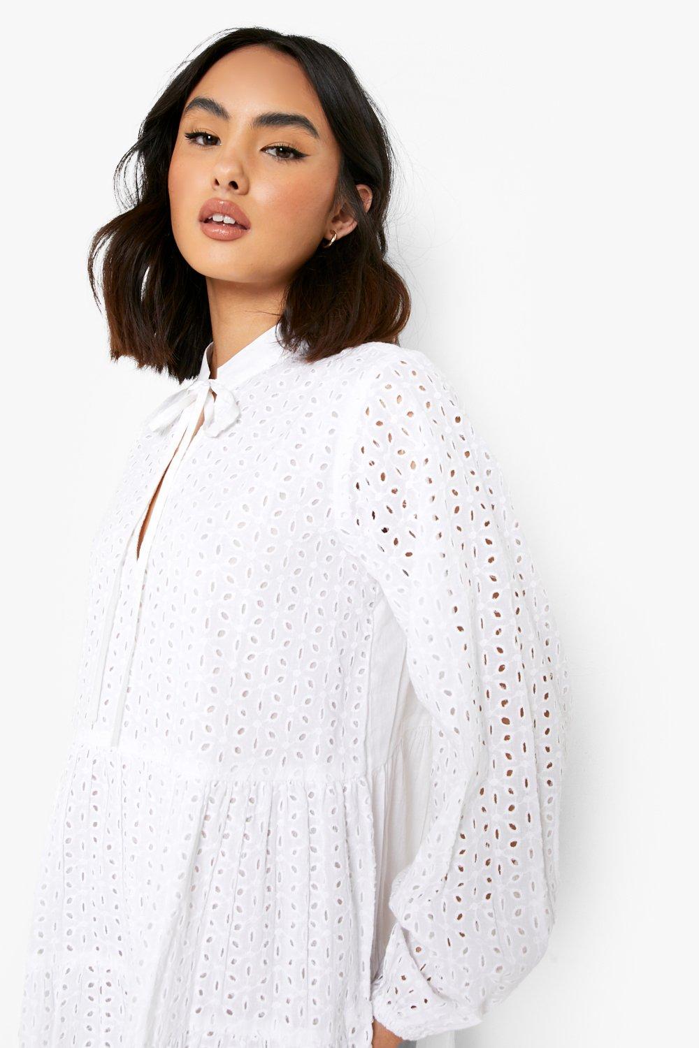 Boohoo broderie dress 2025, Plus Eyelet Anglaise Smock Dress 2025