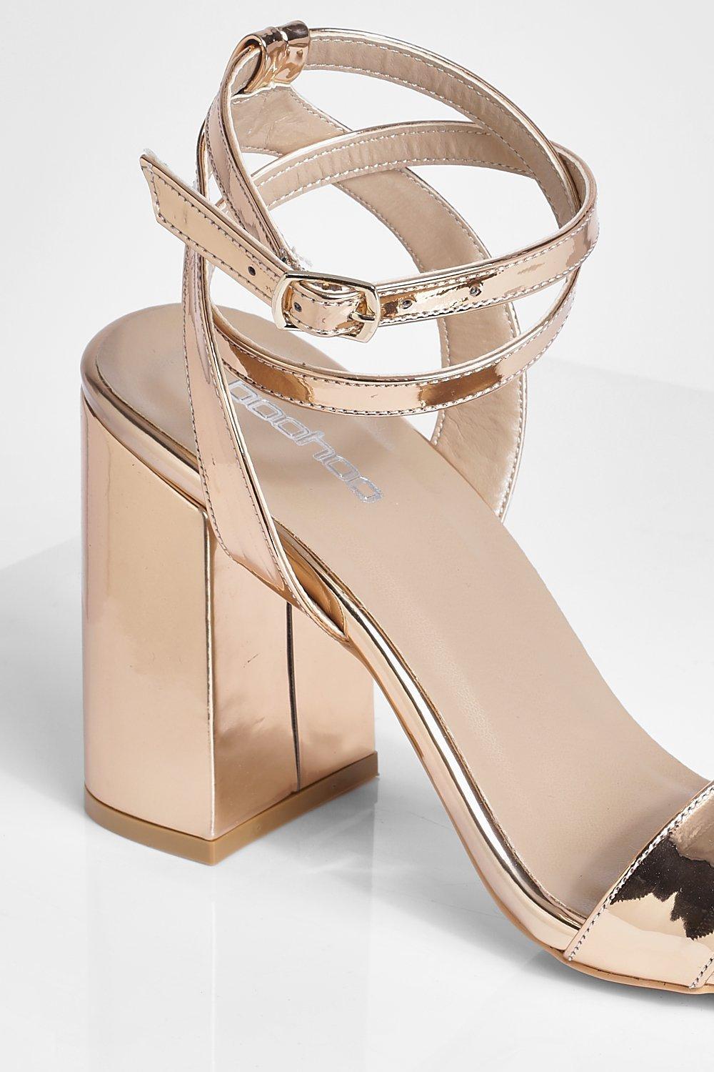 Boohoo rose gold heels 2025, Triple Strap Block Heels 2025