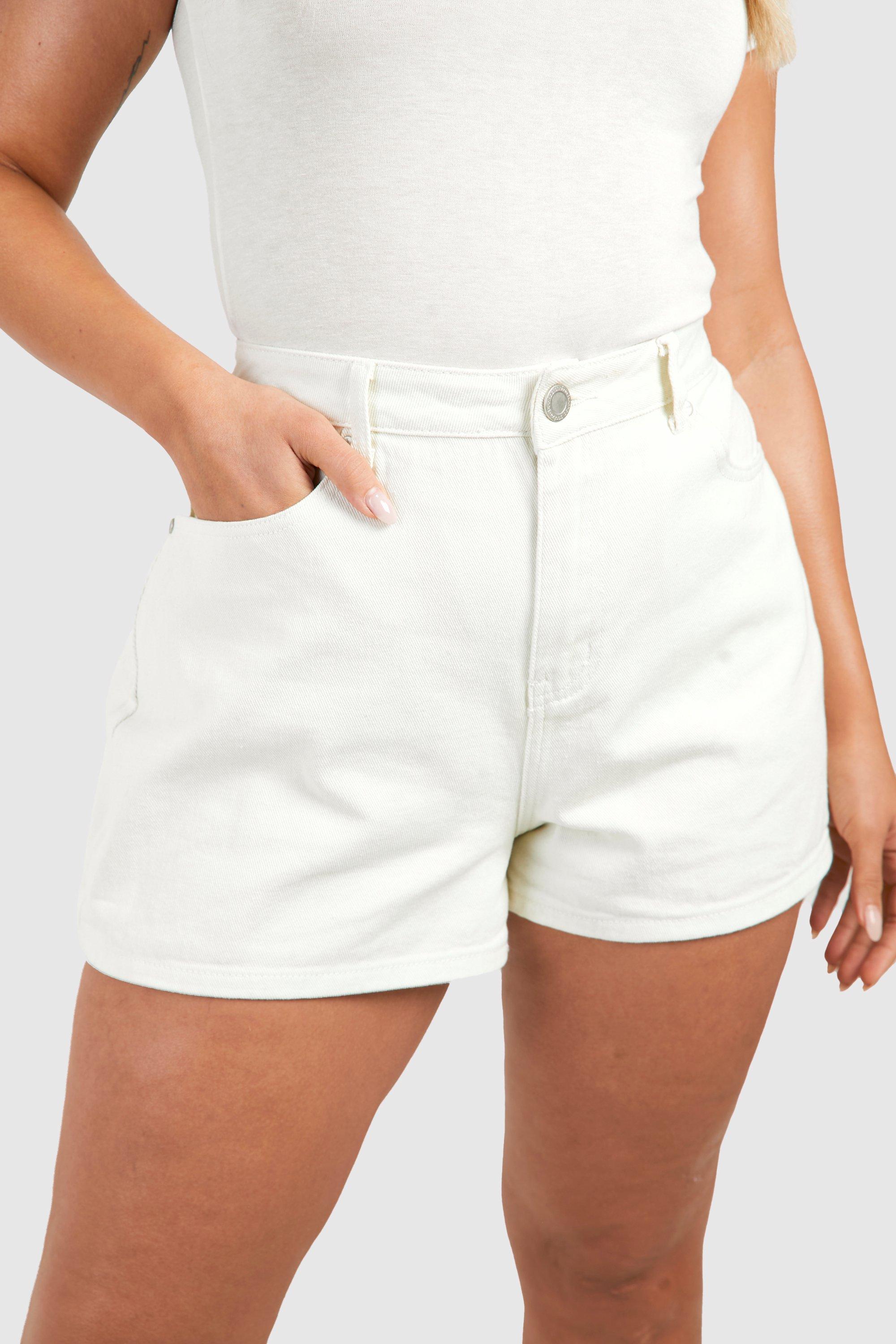 Boohoo white denim shorts 2025, High Waisted Roll Hem Jean Shorts 2025