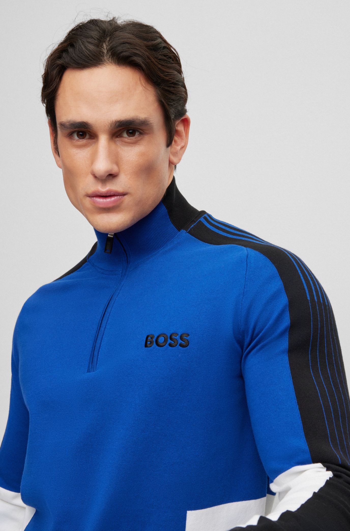 Boss zelchior pro zip sweater 2025, BOSS Zip neck sweater with color blocking 2025
