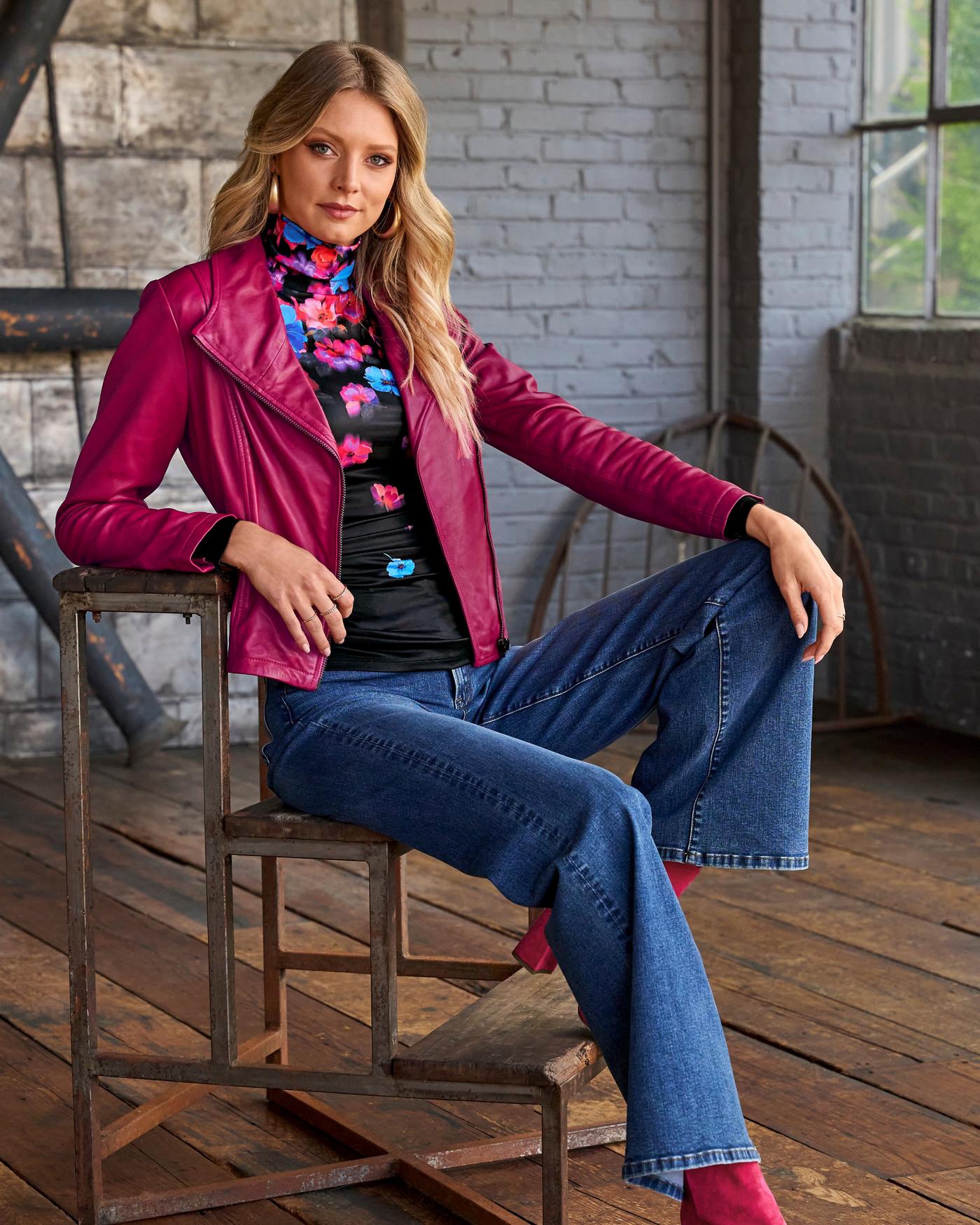Leather Collared Moto Jacket Blossom