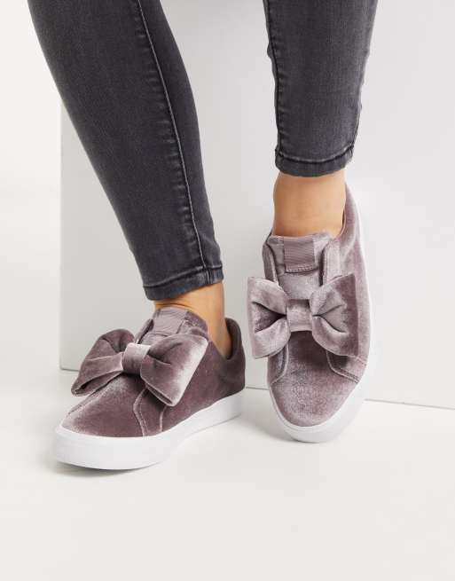 Bow slip on trainers 2025, ASOS DESIGN Wide Fit Dekker bow slip on sneakers in gray 2025