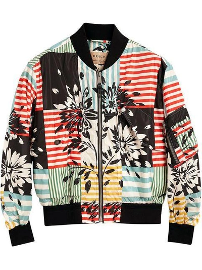 Burberry Floral Stripe Print Bomber Jacket In Steel Blue ModeSens