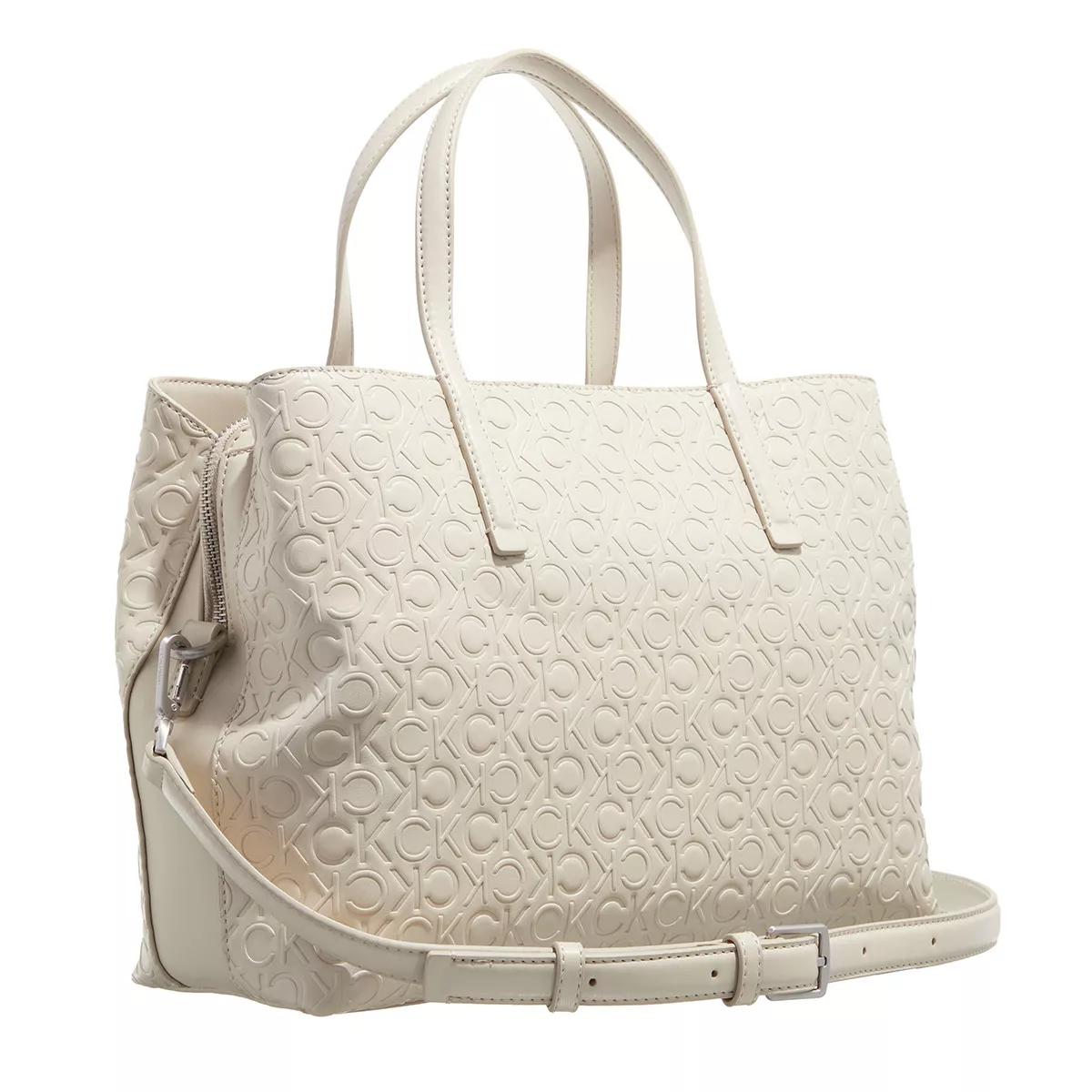 Calvin klein sided med tote 2025, Calvin Klein Ck Must Tote Md Emb Mono Stoney Beige Tote 2025
