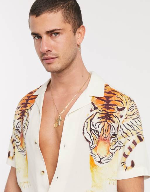 ASOS DESIGN Camicia vestibilit classica con rever e stampa di tigri