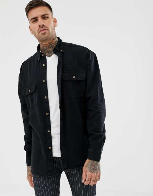 ASOS DESIGN Camicia di jeans nera oversize con tasche doppie