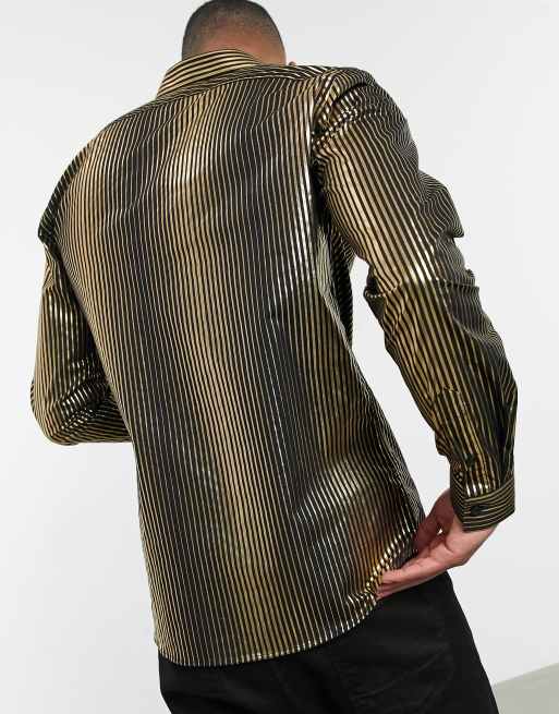 Twisted Tailor Camicia nera e oro a righe metallizzate
